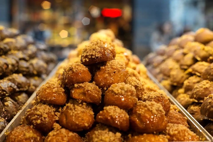 Follow us to a historic bakery selling Greek Christmas sweets, and immerse yourself in the ‘two Kings’ of Christmas Greek sweets: kourambiedes (cookies filled with almonds or nuts and dusted with powdered sugar) and melomakarona (a pastry that combines honey syrup, olive oil, nuts, cloves, and cinnamon).